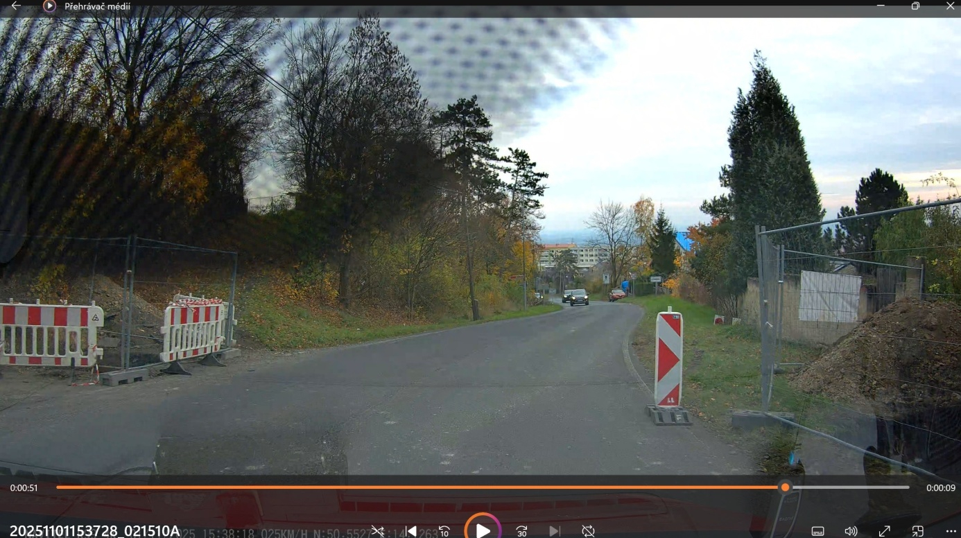 Z kamerového záznamu zjišťuji, že byla před cedulí Litoměřice nešťastně umístěná za stavebním plotem a navíc z poloviny překrytá trávou.