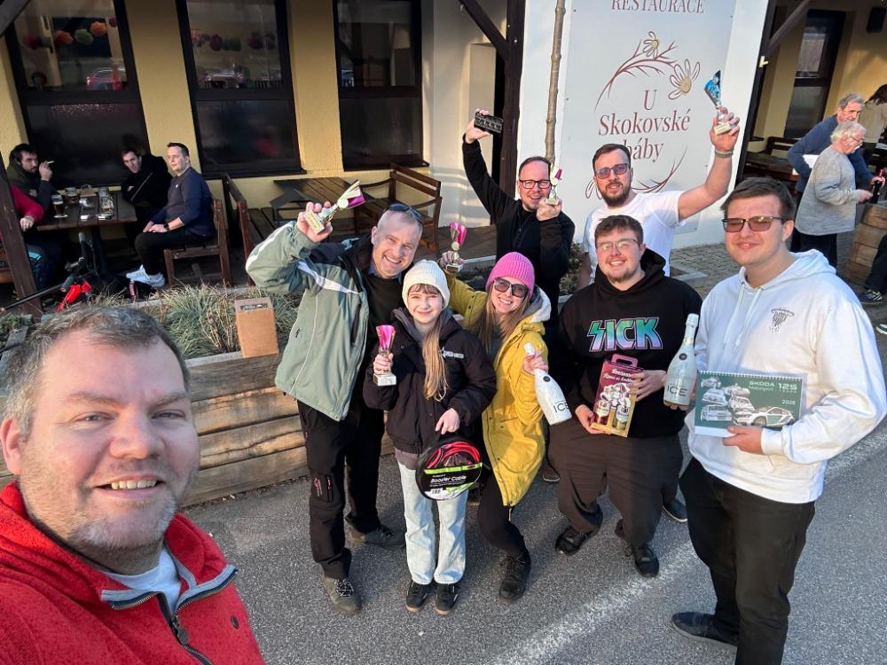 Po zimní přestávce jsme se už na další soutěž velice těšili. Vloni se se JZ jela trochu na sněhu, letos sníh chyběl, ale klouzalo to i tak. Nedali jsme zadní doraz, ale jinak se JZ vcelku povedla a čtverec byl dle sdělení pořadatelů prý nejpřesnější ze všech. Tak to potěšilo. Po snídani a rozpravě jsme se trochu zakecali s ostatními posádkami a na start přijeli přesně v minutě startovního času. Začátek byl z naší strany na omdlení. Než jsme sebrali první PK tak jsme už 2x couvali 😂, nejprve jsme se vraceli za vl. iti, pak jsme jsme zase sjeli z mapy. Slova mojí navigátorky: "Tati, nevadí ti, že jedeme po nemapový komunikaci?" mě přinutili podruhé v krátké chvíli couvat. Pak jsme konečně sebrali první PK a rozjeli se. A to tak, že 1. etapa byla za 0 jak PK tak ČK. 2. etapa prý byla těžká a rozhodla o výsledku.... Asi to byla pravda neboť, my jsme ji zajeli jen za 100 TB, když jsme si nenadjeli sudou kótu, ve které se mělo jet rovně. Trochu jsme se podivili zúženému profilu průjezdu v Ploukonicích, průjezd rozkopanou Všení jsme zvládli podle ranního návodu bez problémů, akorát ten azimut příjezdu do ČK nás trochu rozhodil, protože vůbec nic neřešil... V ČK 3 jsme nakonec byli úplně první ze všech a tak jsme si mohli dopřát krátkou přestávku. Na začátku 3. etapy nám nějak neseděli údaje v iti, nakonec nám došlo, že jsme zřejmě vyjeli z ČK 3 do 3. etapy opačným směrem 😂 😂, tak jsme se otočili a nasadili správný směr jízdy. 3. etapa probíhala v klidu až na kótu 308, kde nás chvilku zdržel autorův oblíbený azimut 😂 😂 Řeku Sobotku jsme zaregistrovali v pohodě, ovšem hned za mostem jsme úmyslně neodbočili doleva neboť plná čára.... No prý nebyla a doleva se dalo odbočit tak, že se nepřejela. Tím jsme ovšem sebrali nastrčenou PK a také nájezd na SM byl tím pádem za další PK navíc. Vzápětí přišla chyba na SM, kterou jsme neprojeli celou. Dále do cíle už to bylo bez problémů. Při čekání na čas dojezdu jsme zjistili na tu chybu na SM, ale PK už byly přepsány na JV. U stolu a u jídla jsme pak v družné debatě s našimi přáteli probrali záludnosti tratě. Byla to opět moc hezká soutěž a autorovi patří velké uznání. Velký dík pak všem pořadatelům za to, že jsme si mohli užít krásnou soutěž.