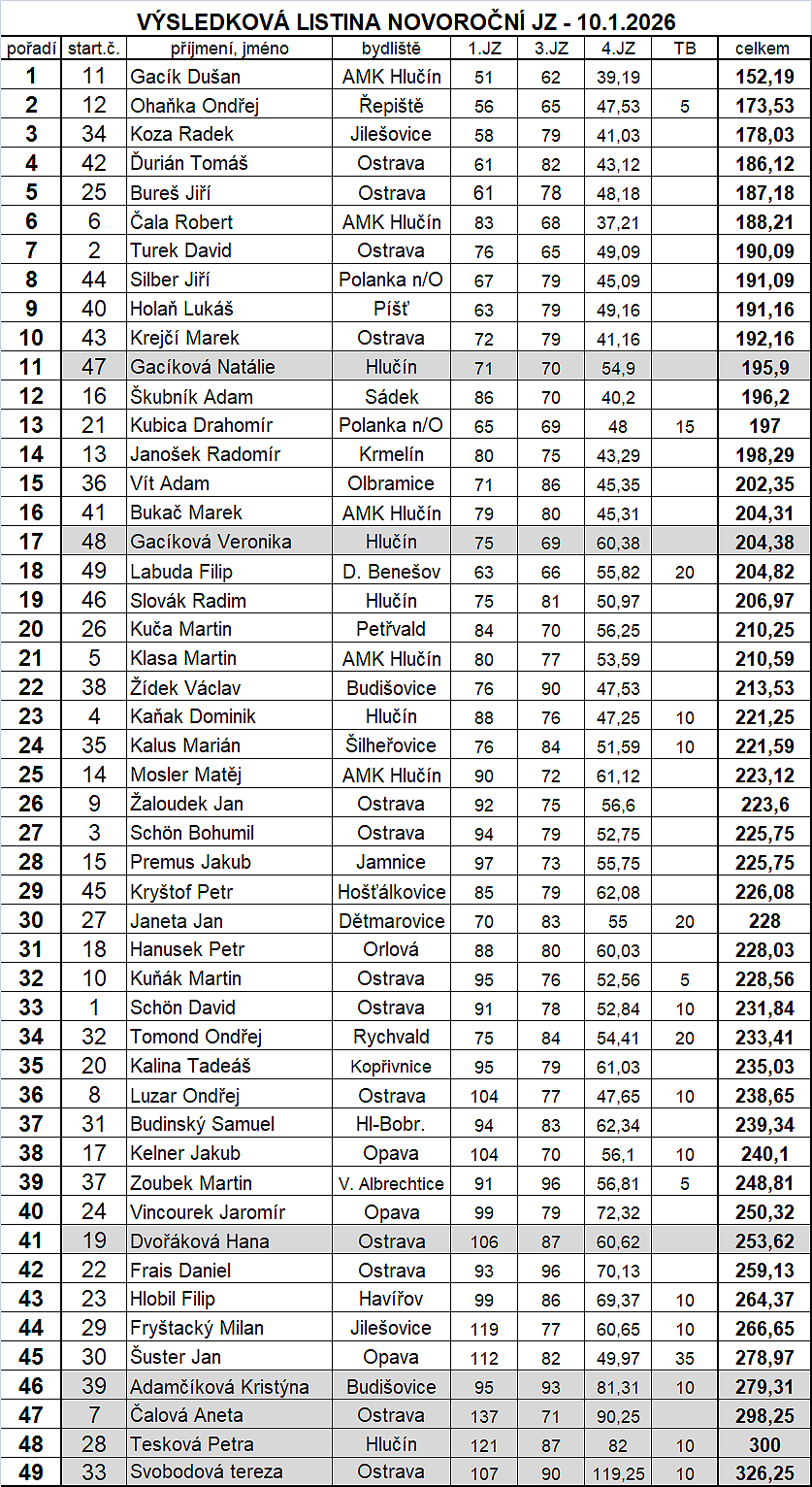 VÝSLEDKY SOUTĚŽÍ